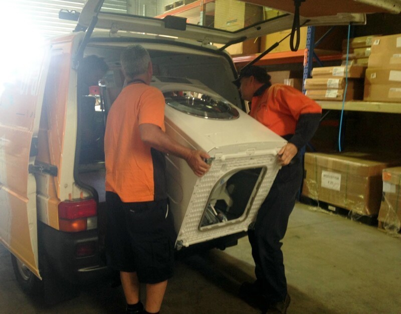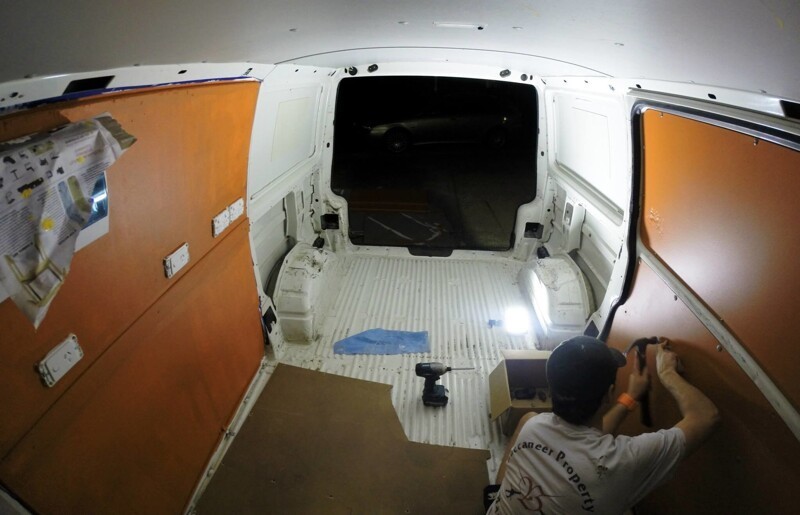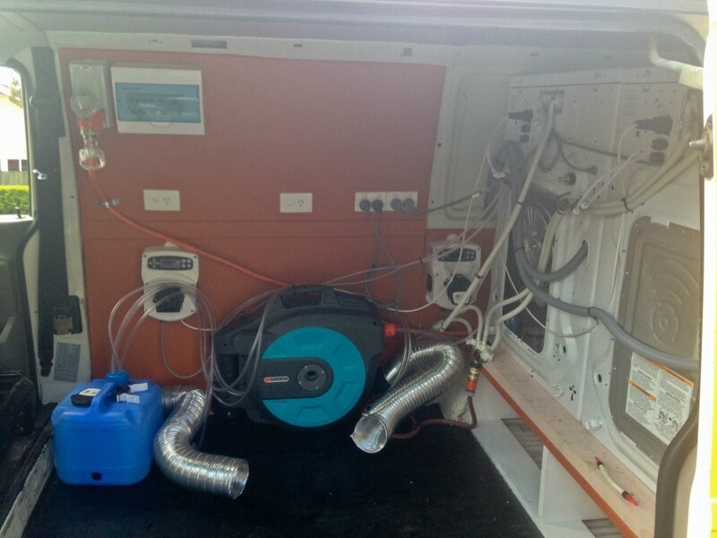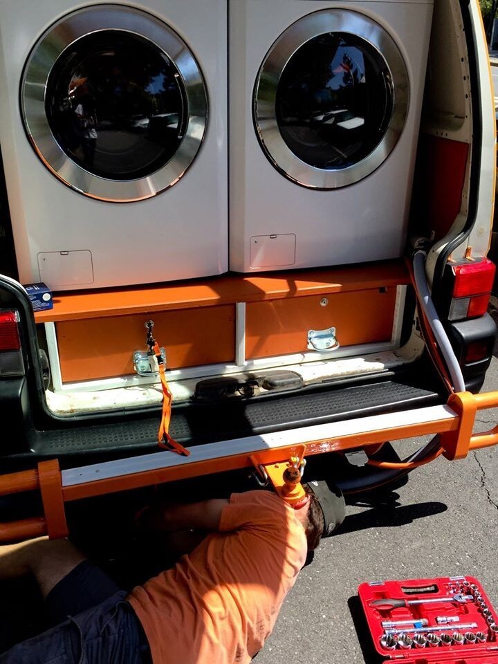 Когда внутренняя часть фургона была завершена, пришло время установить стиральные/сушильные машины профессионального класса