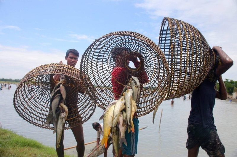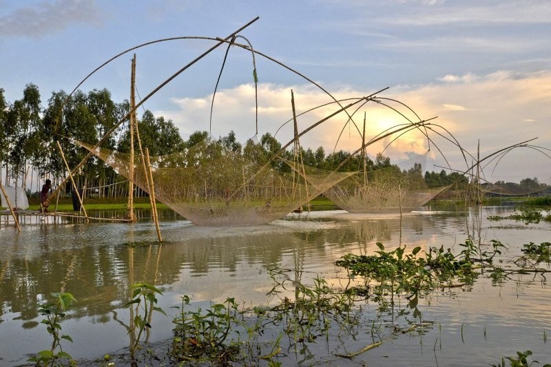 В Бангладеш обычно ловят рыбу с помощью таких сетей