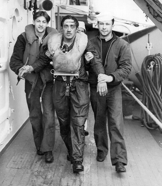 Немецкий подводник с потопленной U175 в руках американских моряков