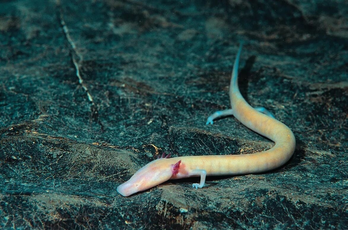 Техасские слепые саламандры: Вот так выглядит призрак детства. Эти животные остаются в личиночной стадии на всю жизнь. Но как размножаться? (9 фото)