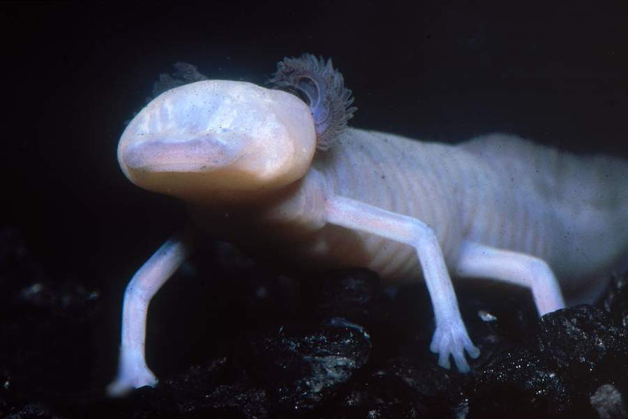 Кстати, о восполнении популяции. Сезон размножения проходит у слепышей круглый год. Главная загвоздка в этом деле — поиск партнёра. Тиндера под водой нет, ровно как и света. Поэтому в партнёре саламандры ценят не внешность, а запах, растворённый в воде.