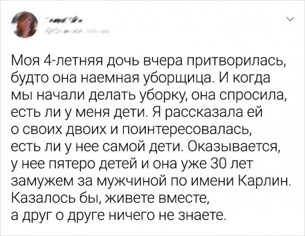 Часто бывает так, что детишки могут очень остроумно подколоть своих родителей или блеснуть какой-нибудь мудрой мыслью. Заботливые мамы и папы, конечно же, записывают "детские афоризмы", но не только в записные книжки, но и в Твиттер. Давайте поглядим на забавные твиты, вдохновителями которых стали дети.