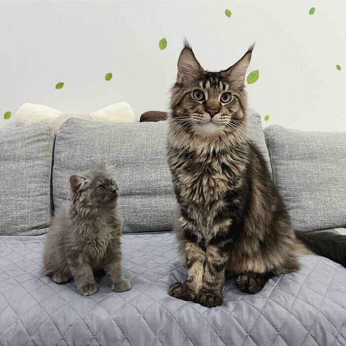 Мейн-куны известны своими крупными размерами. Они считаются самой большой негибридной породой кошек. Сама порода родом из Северной Америки, и её название произошло от названия штата Мэн, где они являются официальной кошкой штата с 1985 года. Многие называют мейн-кунов нежными гигантами - и это правда так. При огромном размере и иногда суровом виде, они обладают мягким характером, они любвеобильны и верны хозяину. Посмотрите на этих красавцев!