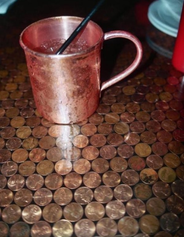 10. Барная стойка, покрытая центами с изображением Линкольна, в баре Lincoln Room в Сан-Диего