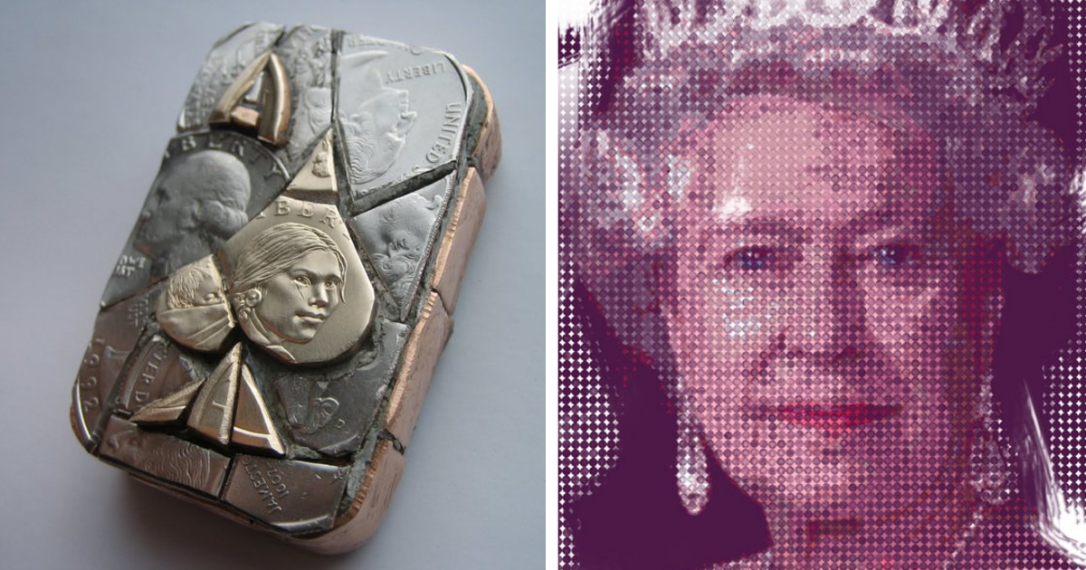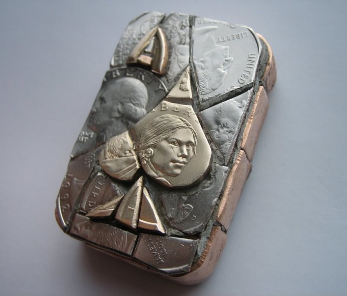 Не знаете, куда девать мелочь? Может, где-нибуь на шкафу пылится целая пятилитровая банка, набитая монетами по десять копеек? Тогда как насчет взять пример с творческих героев этого поста и сделать что-нибудь крутое? Конечно, потребуется много времени и терпения, но результат явно того стоит