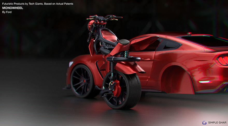 Эта технология позволит водителю превратить колесо автомобиля в моноцикл: «Пользователи смогут превратить колесо своего автомобиля в идеальный городской транспорт», — пишет SimpleGhar. — «Мощные двигатели будут вращать колесо, позволяя водителям без проблем скользить по пробкам».