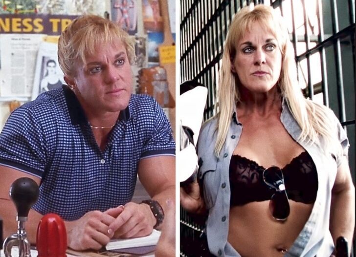 Многие считают, что роль мисс Самец в «Очень страшном кино» исполнил переодетый в женщину мужчина. Однако это и на самом деле женщина — Джейн Трка, американская культуристка, фитнес-модель и актриса.
