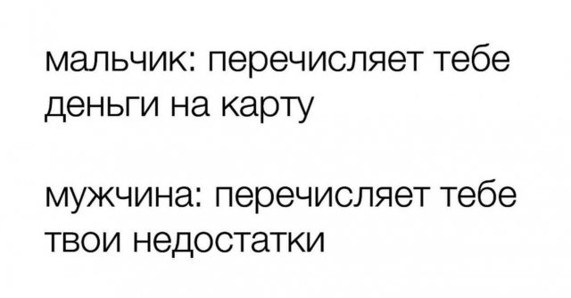 В социальных сетях девушки, с присущим им юмором, решили порассуждать о том, чем же взрослые мужчины отличаются от, так сказать, мальчиков. Сравнения получились разными, но забавными.