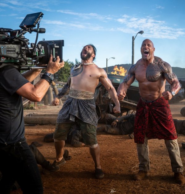 Дуэйн «Скала» Джонсон и Роман Рейнс демонстрируют всю свою мощь на съемках фильма «Форсаж: Хоббс и Шоу»