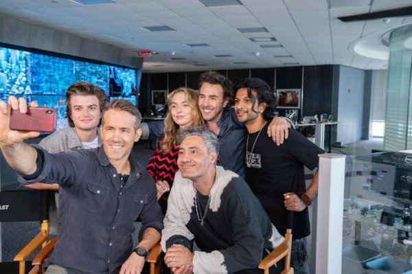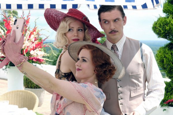 Лесли Манн, Айла Фишер и Дэн Cтивенс делают селфи во время производства фильма «Бывшая с того света»