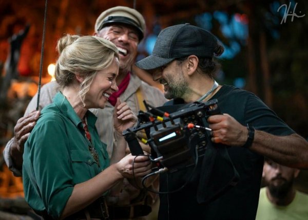 Дуэйн «Скала» Джонсон и Эмили Блант веселятся как могут за кадром фильма «Круиз по джунглям»