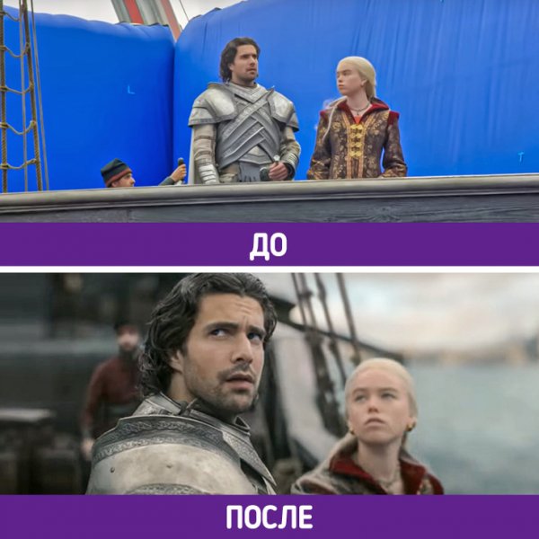 Во время съемок и после наложения спецэффектов в сериале «Дом дракона»