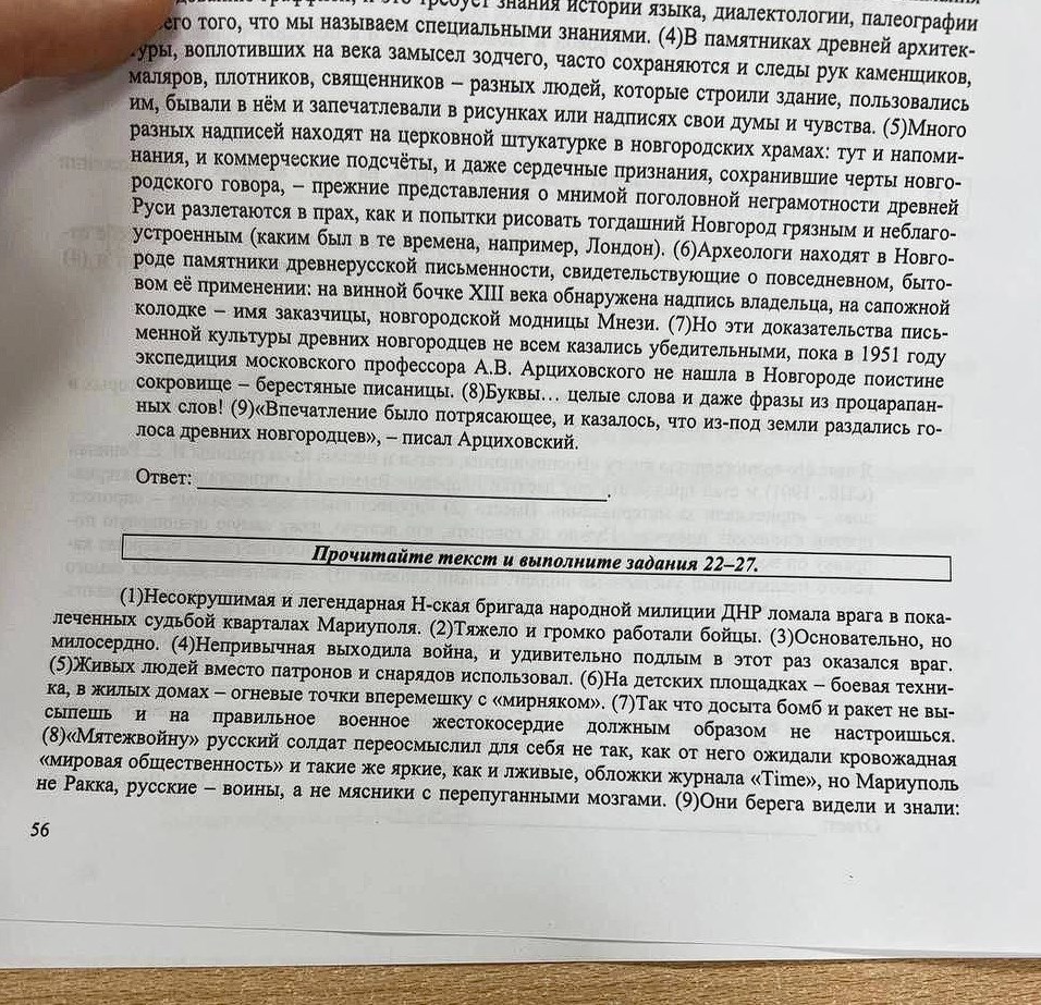 В России в пробный вариант ЕГЭ по русскому языку добавили тошнотворный пропагандистский текст, связанный с войной