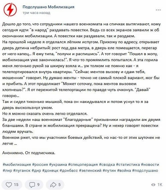 Повестки все еще раздают. Так что не открывайте двери незнакомцам, если не хотите стать удобрением...