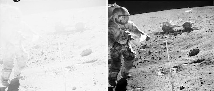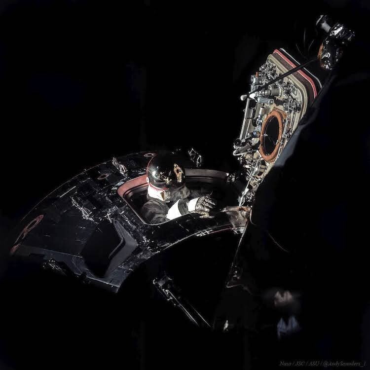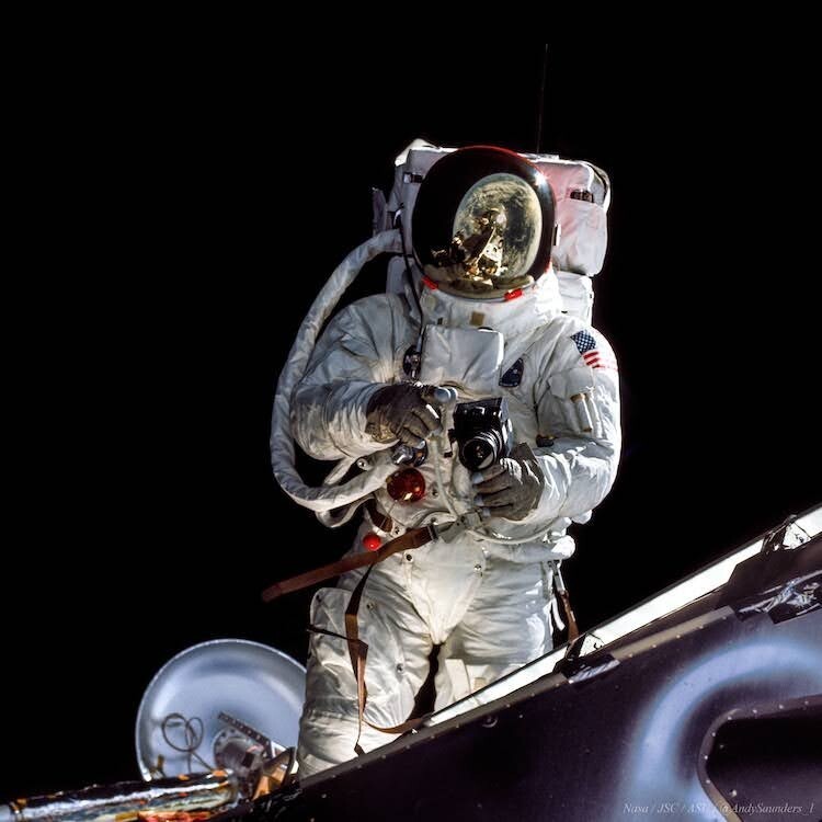 Во время миссии "Аполлон" астронавты тщательно документировали полеты на пленке Hasselblad. В течение многих лет эти изображения хранились в хранилище в Космическом центре Джонсона. К счастью, в последние несколько лет НАСА делало сканы этих изображений в высоком разрешении и публиковало их. Эти снимки привлекли внимание специалиста по визуализации Энди Сондерса.