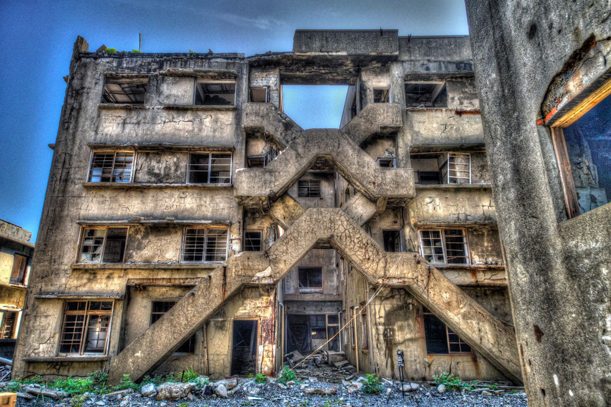 Заросшие сорняком и мхом здания, зияющие, словно пустые глазницы, разбитые окна — остров Хасима, подобно кораблю-призраку, внушает гнетущее настроение.