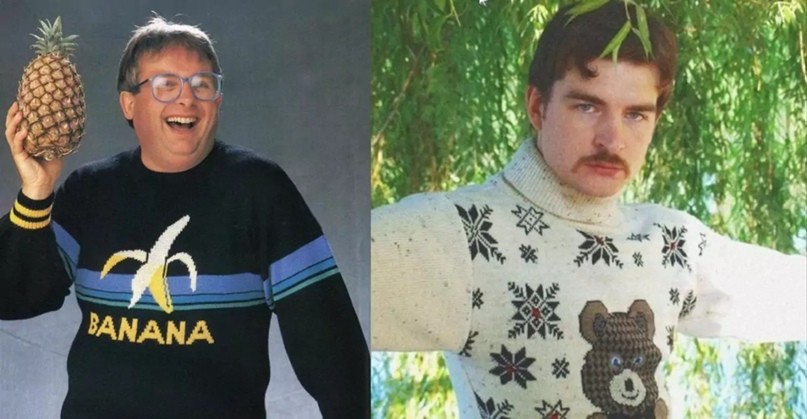А сам свитер, в принципе, интересный. Молодежь сейчас такое любит. Никто не удивится, увидев на улице парня лет 25 в свитере с оленями, Микки-Маусом или таким вот медведем. Но я бы в таком из дому не вышел ни сейчас, ни в 80-е.