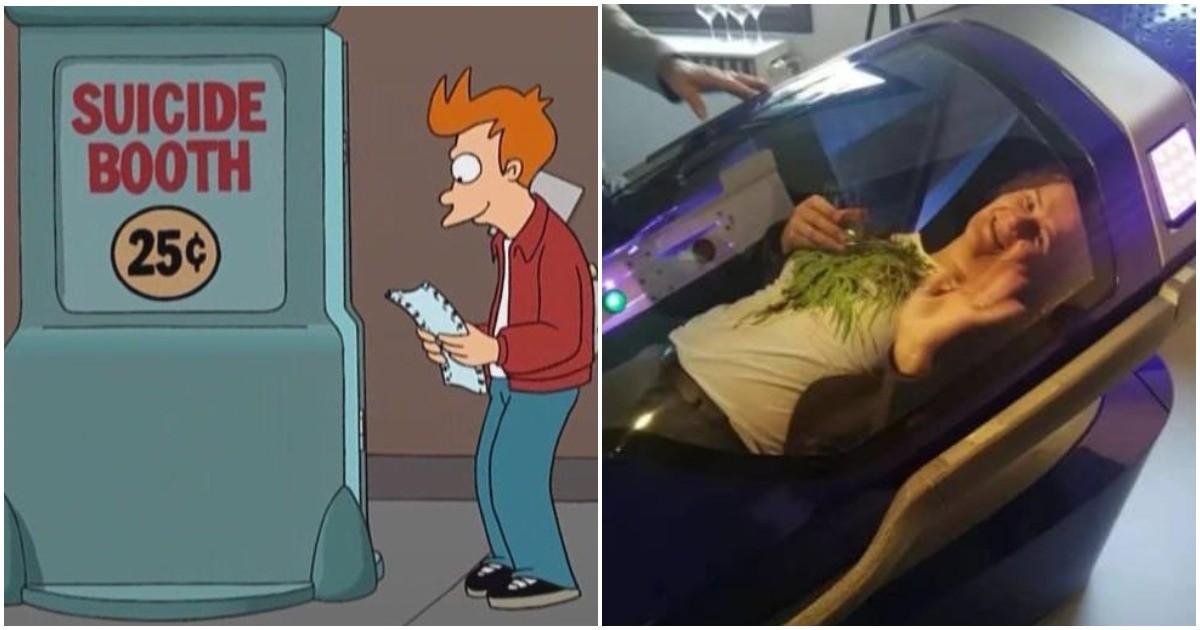 Помните, в "Футураме" были были будки для самоубийств? Заходишь, бросаешь денежку, выбираешь способ и привет, загробный мир. Ну так вот, для жителей Швейцарии подобный агрегат стал реальностью.