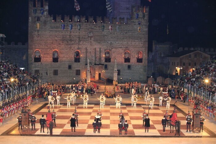 Раз в два года в сентябре здесь проводится игра в шахматы, фигурами для которой выступают люди. Очень красочное зрелище. Обычай уходит своими корнями в 15-й век.