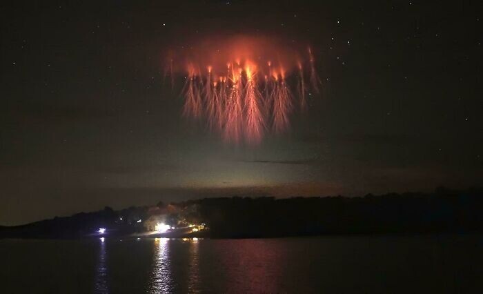 Редкая молния "красная медуза" на высоте 30 километров в атмосфере