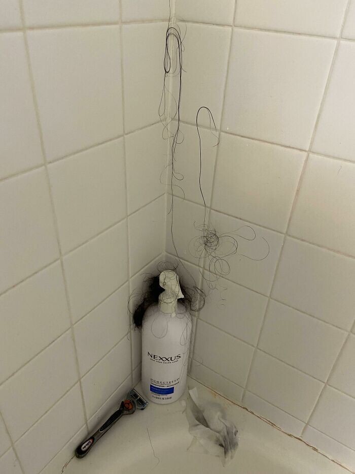 Меня не было дома несколько недель. Вернувшись, я увидел, что сосед оставил нашу общую ванную вот в таком виде