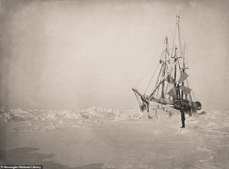 Фрам, запертый в паковых льдах, был снят в полдень 1 марта 1894 года самим Нансеном. Ялмар Йохансен, изображенный на переднем плане, записал в своем дневнике в тот день: «Сегодня утром меня сфотографировал Нансен, на заднем плане корабль. Он всех нас снимет, чтобы доказать вам , что, несмотря на полярную ночь, выглядим мы неплохо».