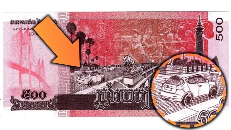 В Камбодже Nissan Juke и Toyota Camry увековечили на банкноте номиналом 500 риелей (10 фото)