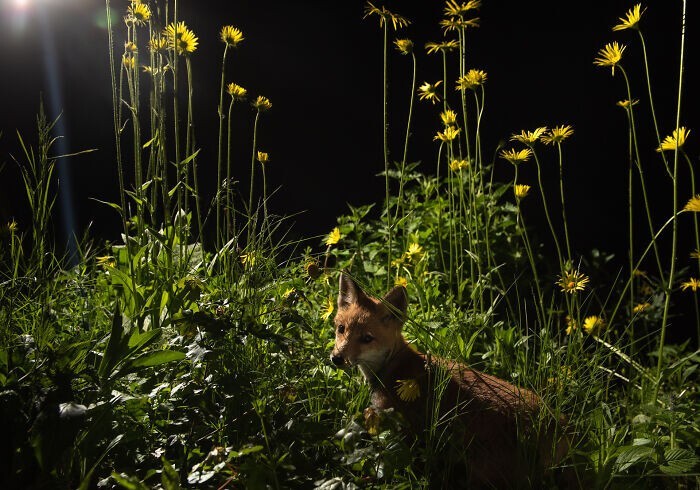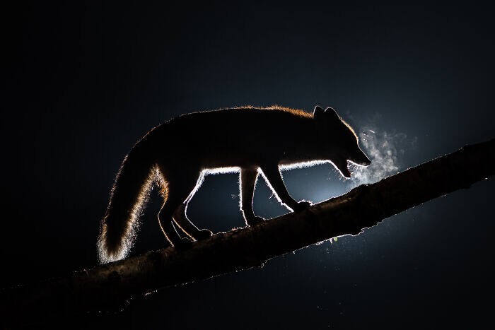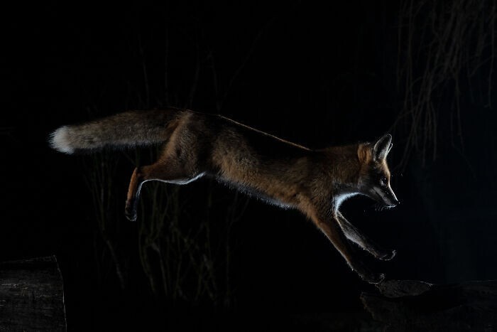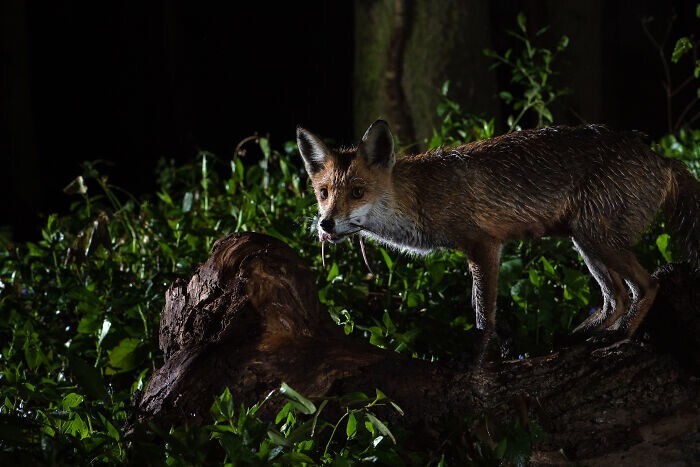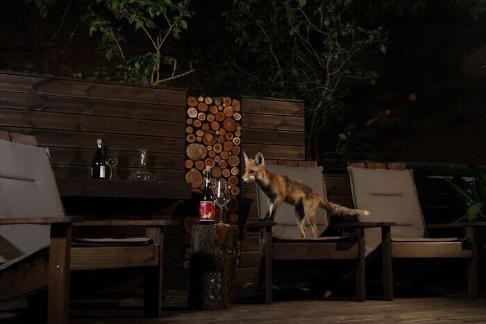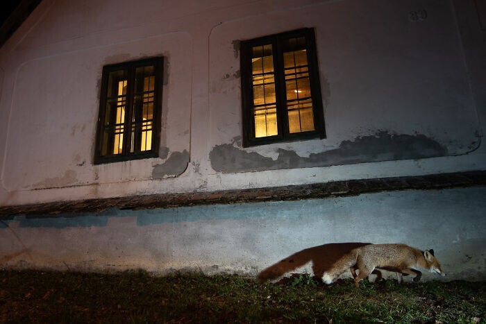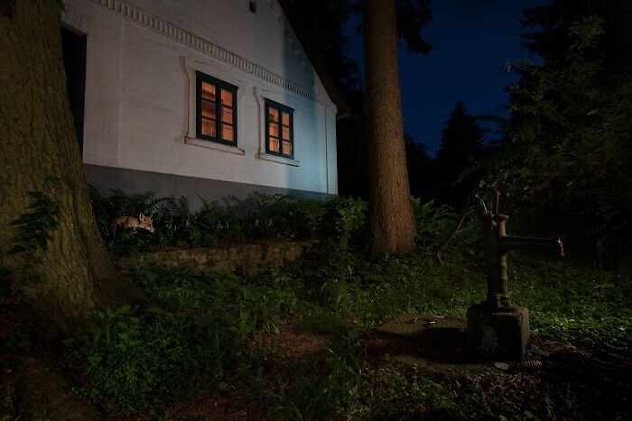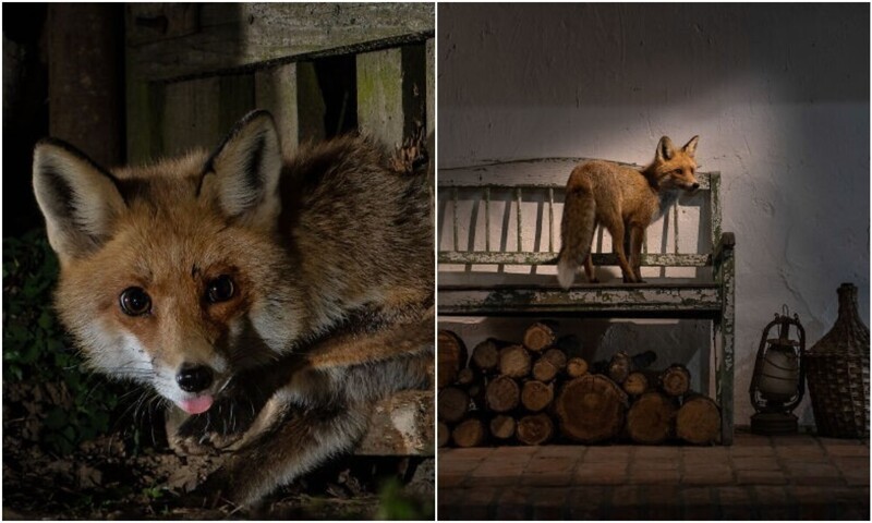 Фотограф установил в своём дворе лампы, чтобы получить чёткие снимки, и каждый раз делал "фотосессии" для лисицы. Часть фото Милан сделал с помощью камеры с дистанционным переключателем, а другие - с помощью фотоловушки, которая реагирует на движение и делает снимки. Взгляните на его работы с участием гостьи-лисицы: