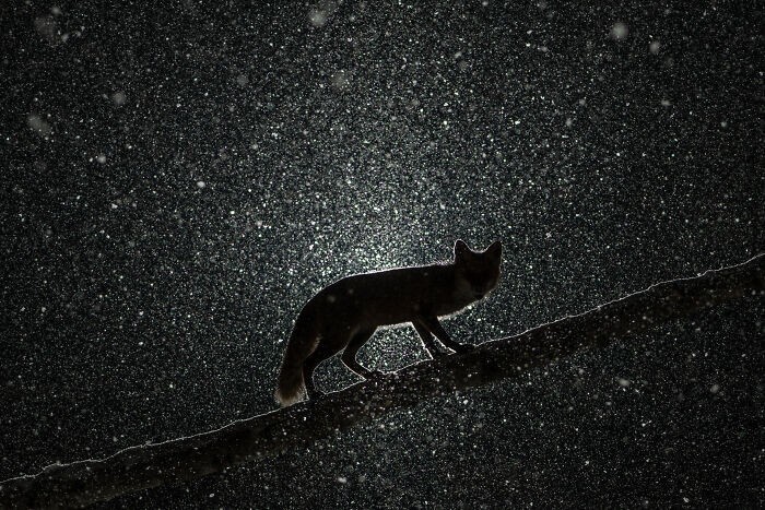 "На протяжении 8 месяцев я почти каждую ночь сидел у окна своего дома, и наблюдал за жизнью лесных лисиц. Одна из них оказалась смелее других. Она появлялась после заката, и иногда заглядывала в мой двор - тогда я сразу взялся за камеру, чтобы запечатлеть необычную гостью. Между нами воцарились тёплые отношения, и я даже дал ей кличку - Рокси. Наблюдая за ней, я многое узнал о лисицах, да и о себе, и людях в целом. Надеюсь, когда-то большинство перестанет видеть в лисицах лишь вредителей," - пишет фотограф.