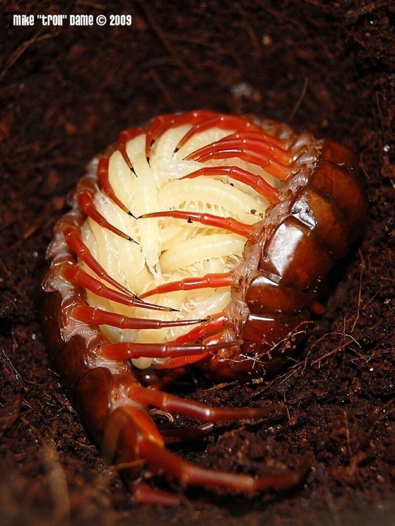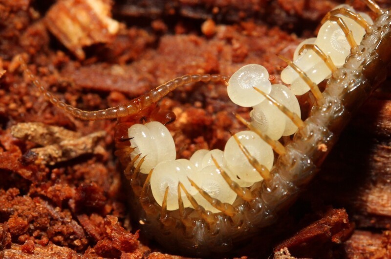 Кстати, с помощью множества лапок они могут переносить свои яйца с будущим потомством (на фото выше), что выглядит не менее жутко, чем сама многоножка. Они в основном обитают в районах с тёплым климатом, поэтому в Азии они постоянные гости домов.