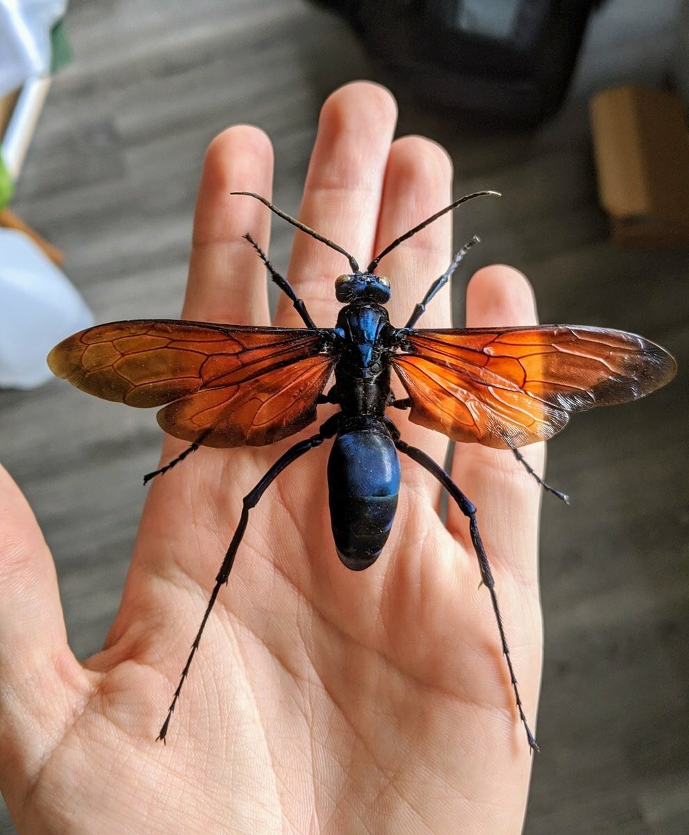 В английском языке этих ос называют tarantula hawks, «тарантуловые ястребы»: они с ястребиным рвением набрасываются на своих жертв – пауков-птицеедов, по-английски именуемых tarantula. Начнем с того, что их насчитывается более 100 тысяч видов, большая часть проживает на тропическом поясе и пара видов обитает в субтропиках. В сезон размножения самка тарантулового ястреба часами летает низко над землей или бегает по ней в поисках конкретной цели — паука тарантула.