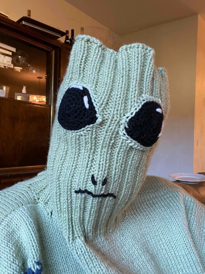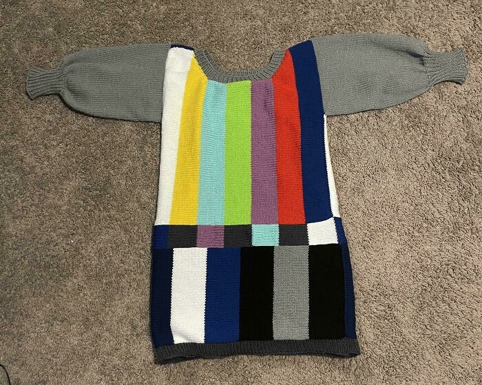 5. "Одиннадцать месяцев спустя я наконец закончил этот космический джемпер в стиле 80-х, дизайн которого я нашел в r/Knitting"