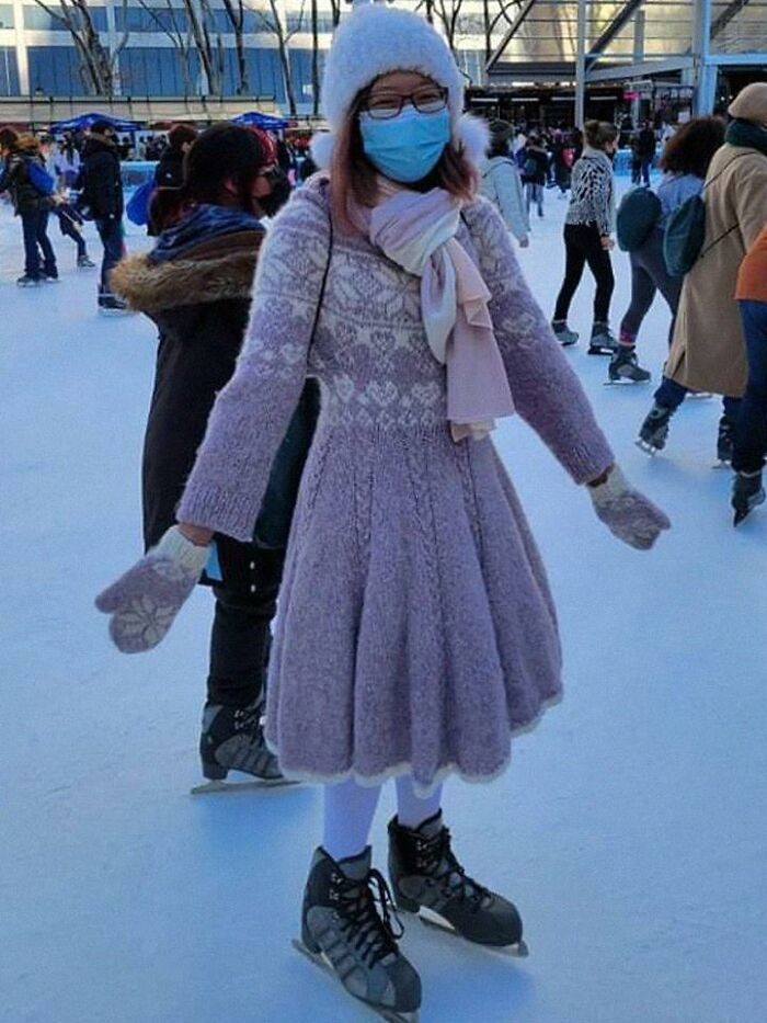 22. "Наконец-то я надела платье и варежки для катания на коньках!!"
