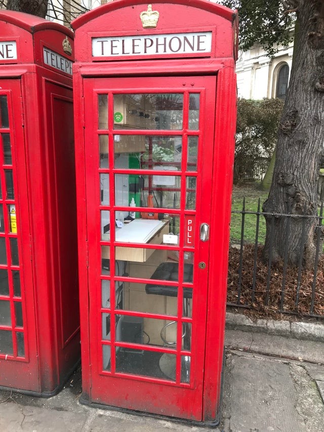 Раньше будку использовали по назначению, но со временем она стала офисом