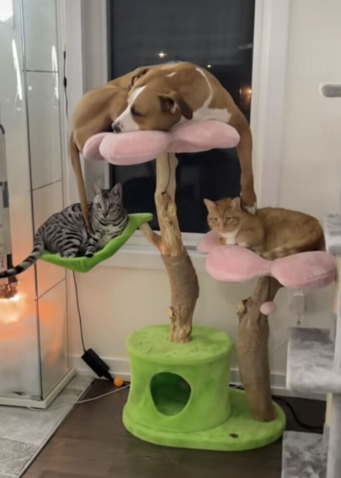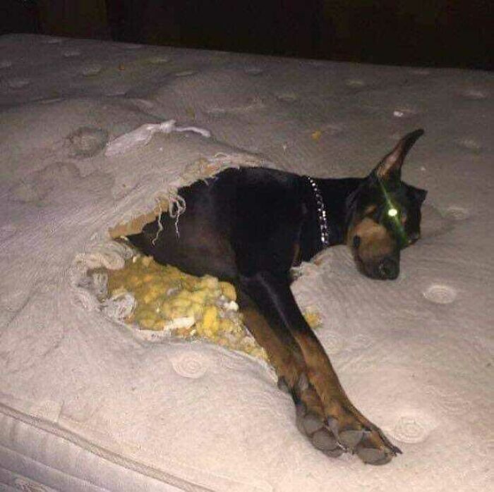 "Фото моей собаки, пока она проводит время в дневном приюте. Она просто влюблена в немецкого дога, который с ней в одной группе"