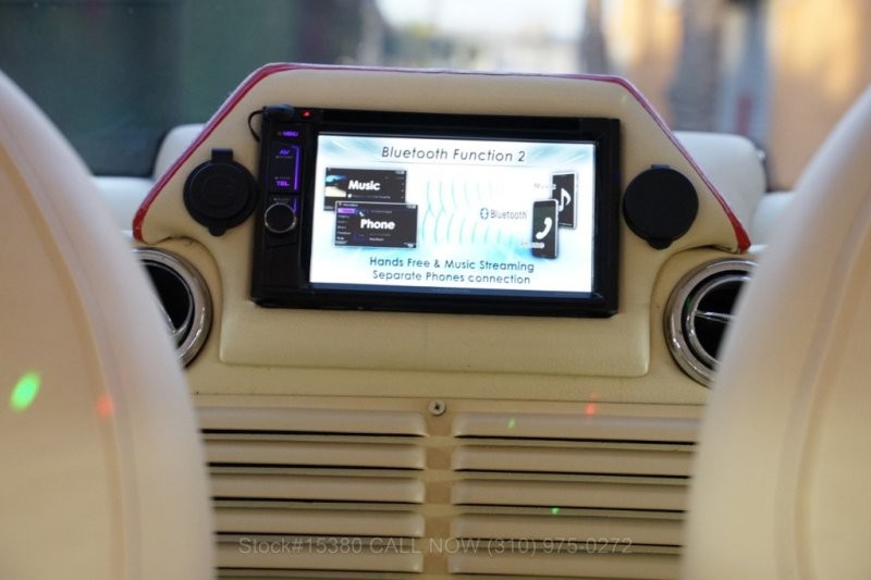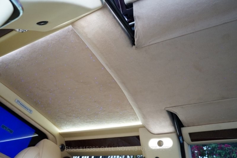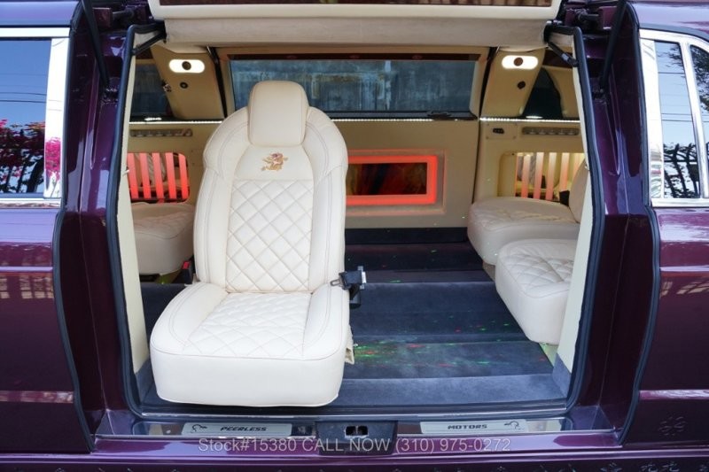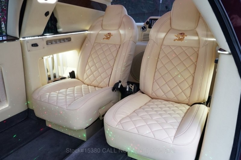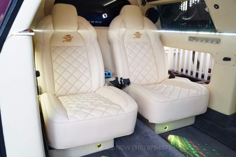 Салон у машины практически полностью отделан кожей кремового цвета. В процессе тюнинга он был перепланирован: в задней (пассажирской) части имеются два ряда сидений, расположенных друг напротив друга.