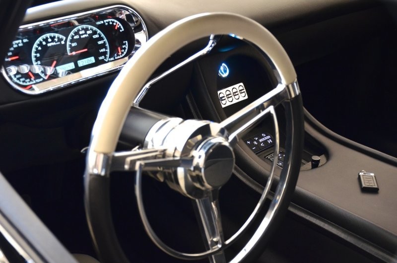 Салон получил руль от Colorado Custom, мультимедийную систему Kicker и цифровые приборы Dakota Digital, а также кресла от Lexus. Интерьер отделан чёрной кожей с белыми вставками. Под капотом рестомода скрыт 850-сильный двигатель V8 от Ford, доработанный Jon Kaase Racing, который сочетается с автоматической коробкой передач Chevrolet.