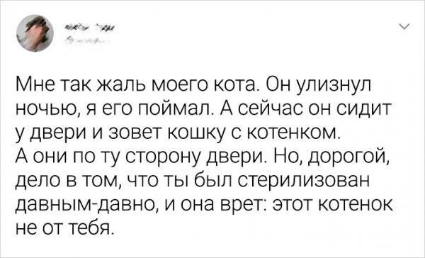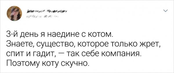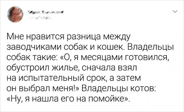 Без домашних животных наша жизнь была намного скучнее и печальней. Ведь пушистые питомцы - это бесконечный источник радости, утешения и вдохновения. Нет, серьезно, домашние животные просто не оставляют людям времени для экзистенциального кризиса и тоски, ибо им требуется наше стопроцентное внимание. Это подтвердили "кошковеды" и "собаколюбы" с просторов Твиттера.