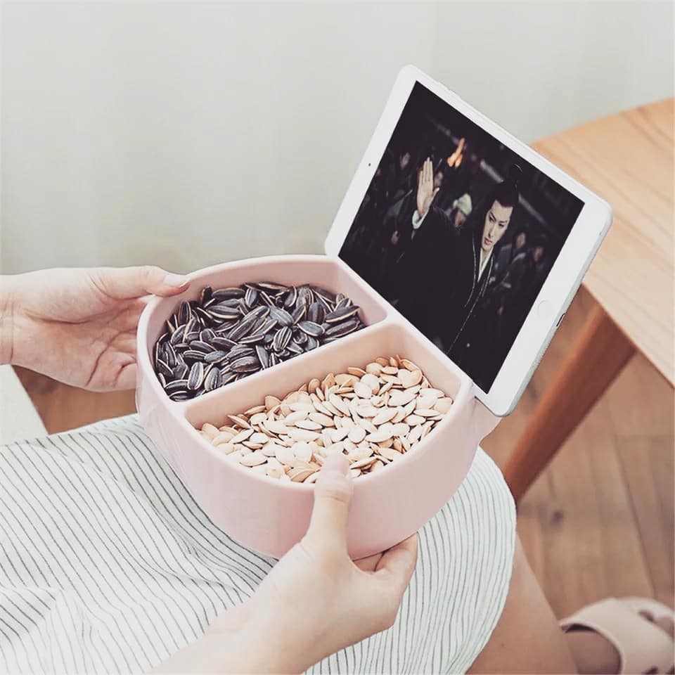 Подставка для телефона или планшета с отсеками для закусок