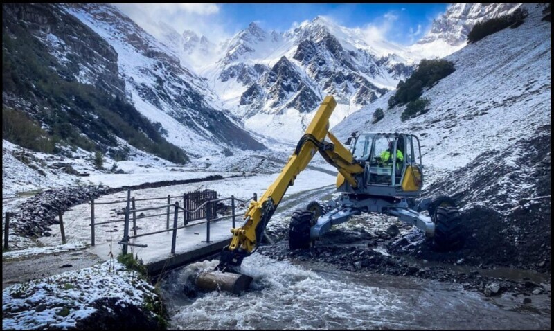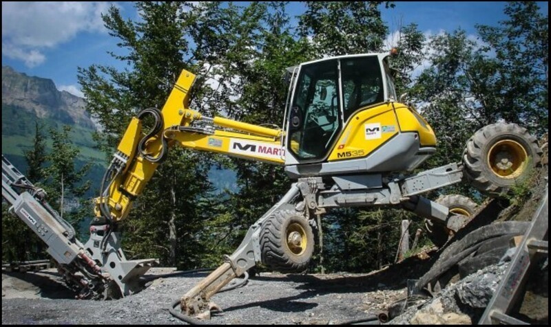 Изначально эти машины были разработаны для работ на крутых заснеженных склонах Швейцарских Альп, где условия близки к экстремальным. Их авторами принято считать двух инженеров — Йозефа Кайзера и Эрнста Менци. Однако погружение в бизнес разрушило их дружбу и они начали строить «пауков» каждый по-своему, а их фирмы конкурируют до сих пор. Благодаря новациям и технологиям, работающий экскаватор выглядит как стальное животное, а не машина.