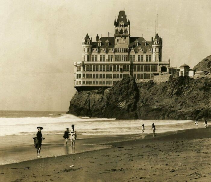23. Знаменитый дом на скале в Сан-Франциско, до того, как он был уничтожен пожаром в 1907 году