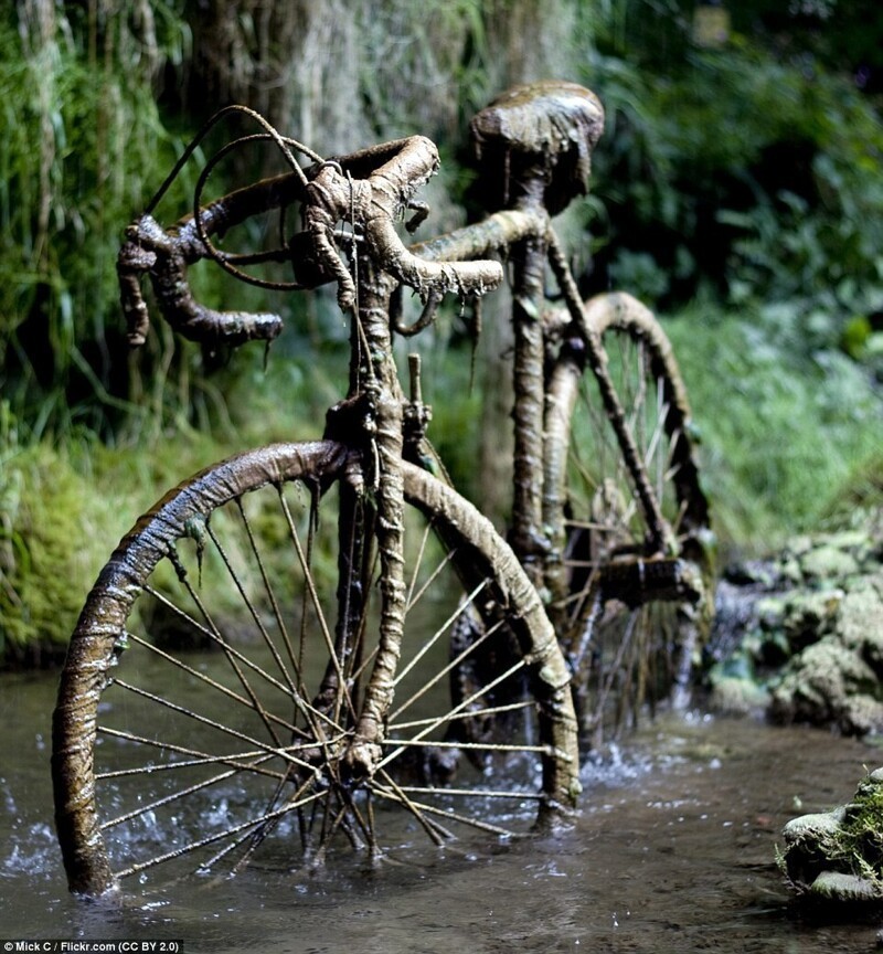 Десятилетия назад местные жители оставили здесь некоторые предметы, и со временем они действительно окаменели - например, окаменевшие мужской цилиндр, женская шляпка 1850-х годов сохранились и по сей день. Более новые предметы, которые оставили жители под водой - велосипед и плюшевые мишки.