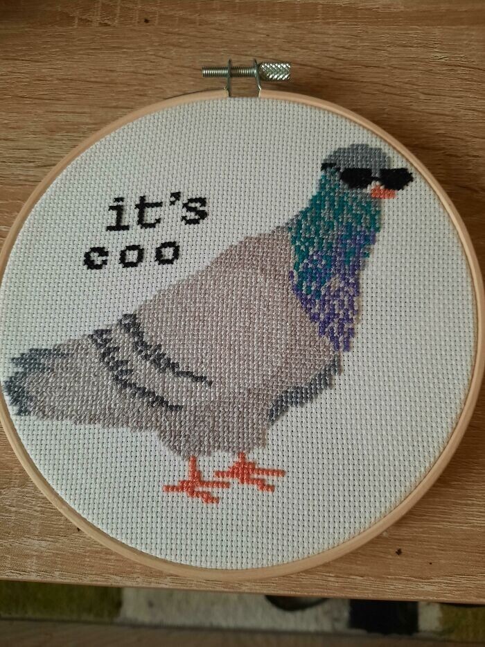 "Я вышила это для моей помешанной на голубях подруги. Как думаете, ей понравится?"