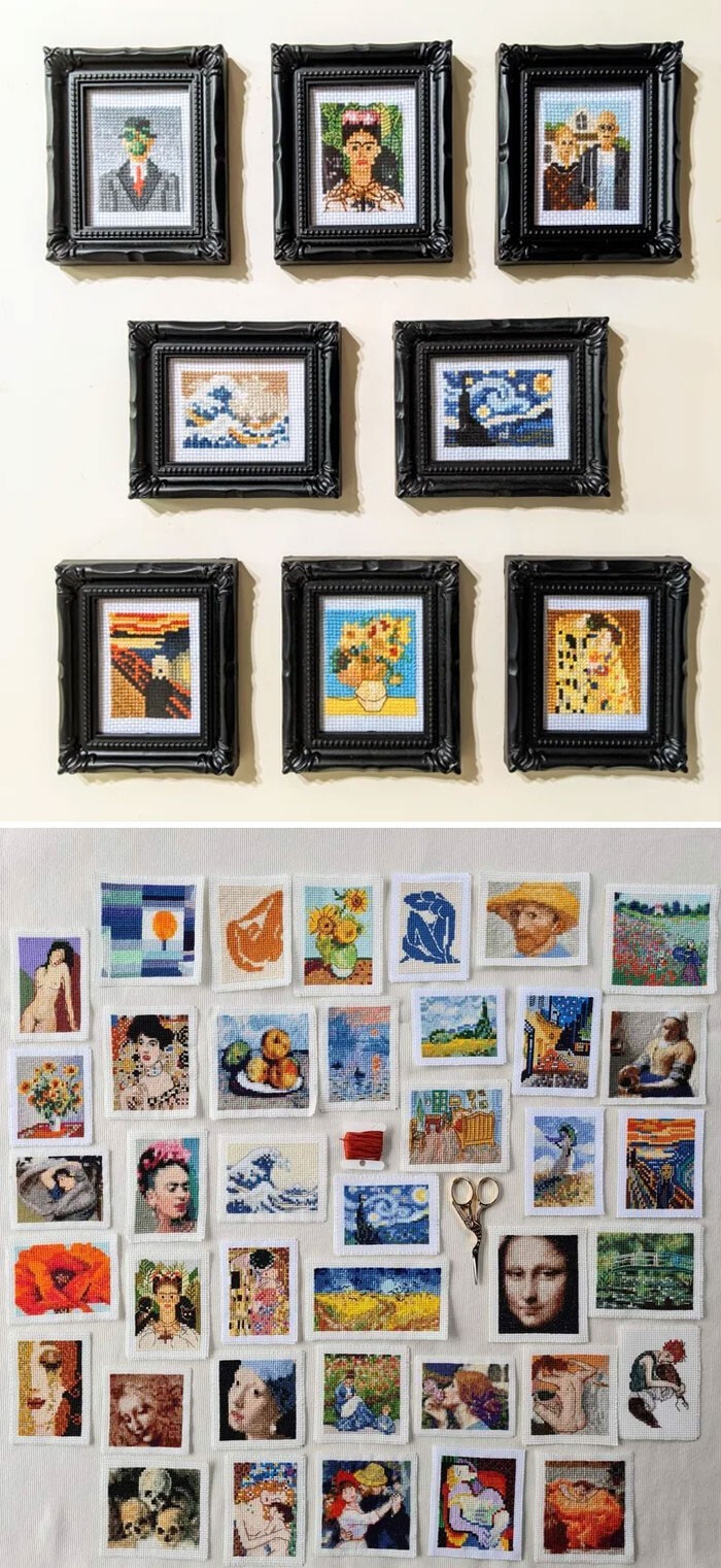 "У меня агорафобия, и я скучаю по художественным галереям. Поэтому я вышила свою мини-галерею"