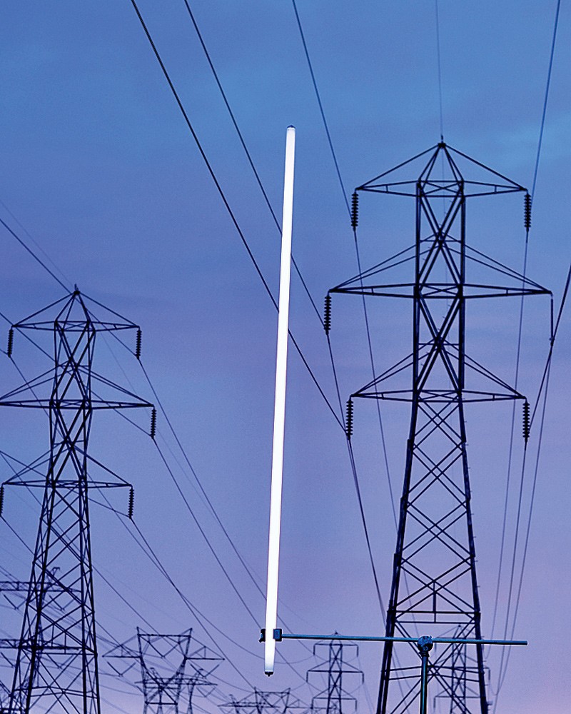 Люминесцентная лампа светится рядом с линией ЛЭП, бесплатно