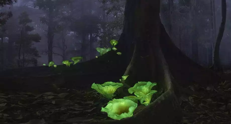 Omphalotus Nidiformis — вид биолюминесцентных грибов из Австралии. Их сложно найти, так как светятся они лишь несколько недель в году.