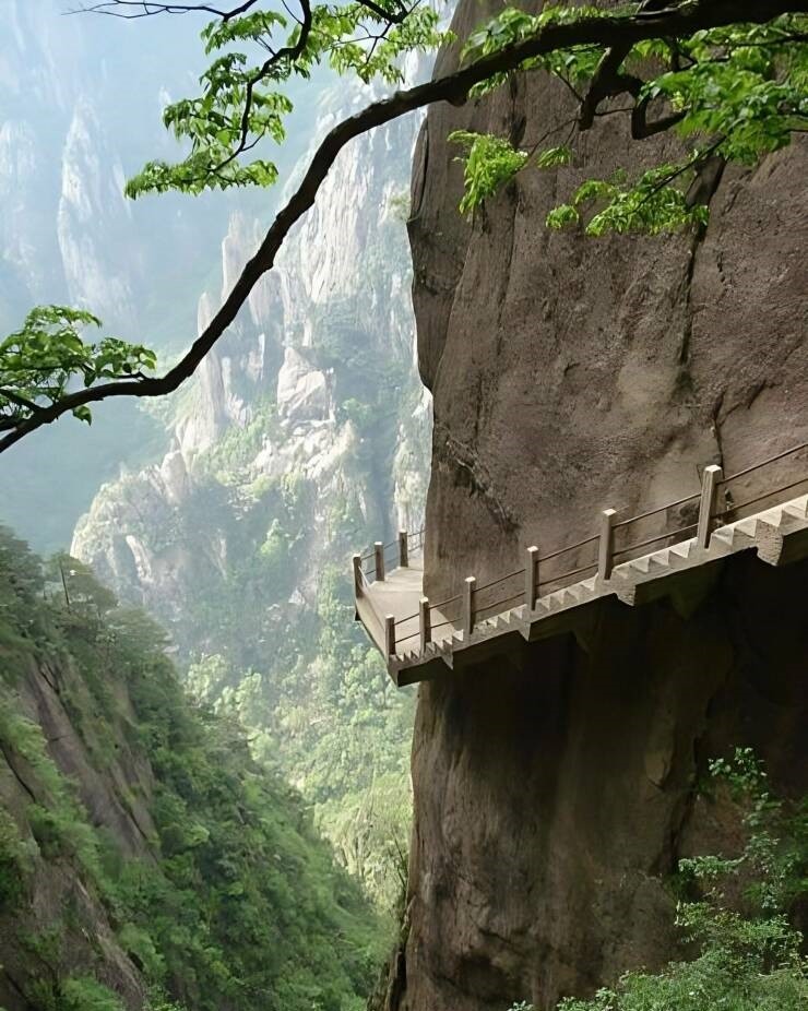 Хуаншань - горная гряда в провинции Аньхой в восточной части Китая. Этот район известен своими гранитными скалами, покрытыми соснами, воспетыми китайскими художниками и поэтами со времён династии Цинь. Три самых высоких пика: Пик Лотоса, Пик Света и Пик Небесной Столицы. Хуаншань - в списке Всемирного наследия ЮНЕСКО, одно из самых популярных туристических мест Китая.