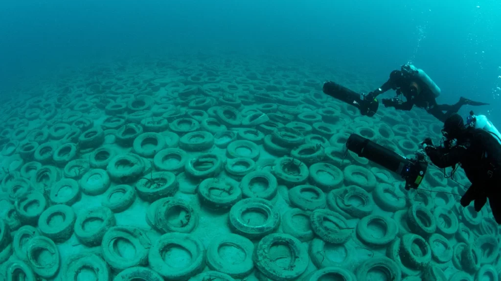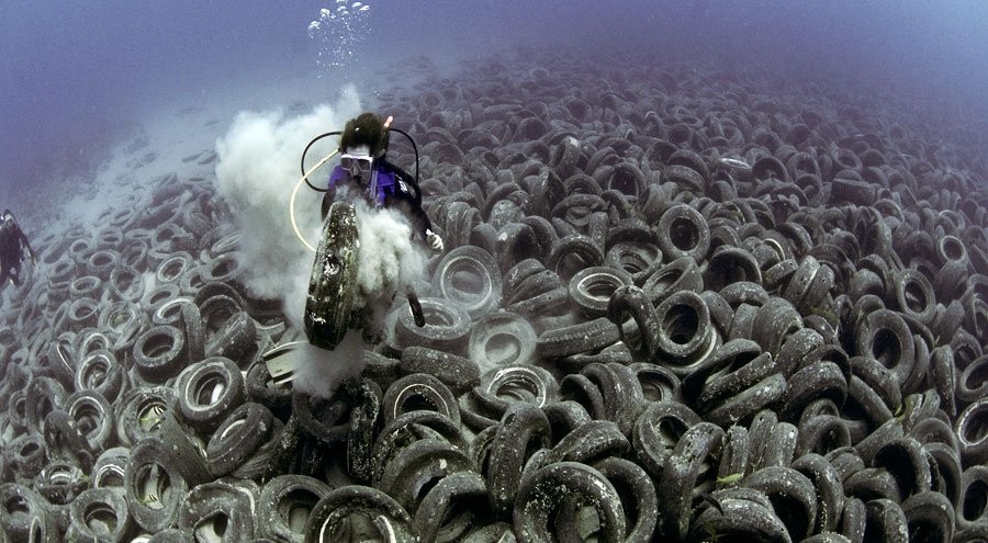 Так, по самым скромным подсчетам, только на «рифе Осборн» еще 2/3 покрышек находятся на морском дне и это невзирая на почти 20 лет работы по их извлечению.