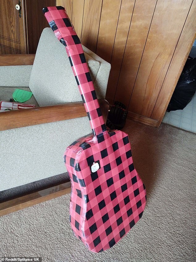 Этот даритель из США не хотел, чтобы его отец не догадался, что получит в подарок гаечные ключи, поэтому искусно обернул их в форме гитары.