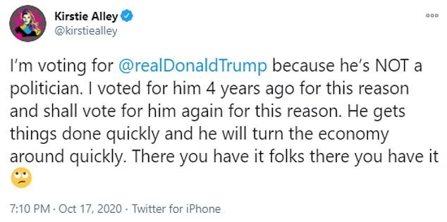 "Я голосовала за него 4 года назад по этой же причине буду голосовать за него снов", - писала она в соцсети.
